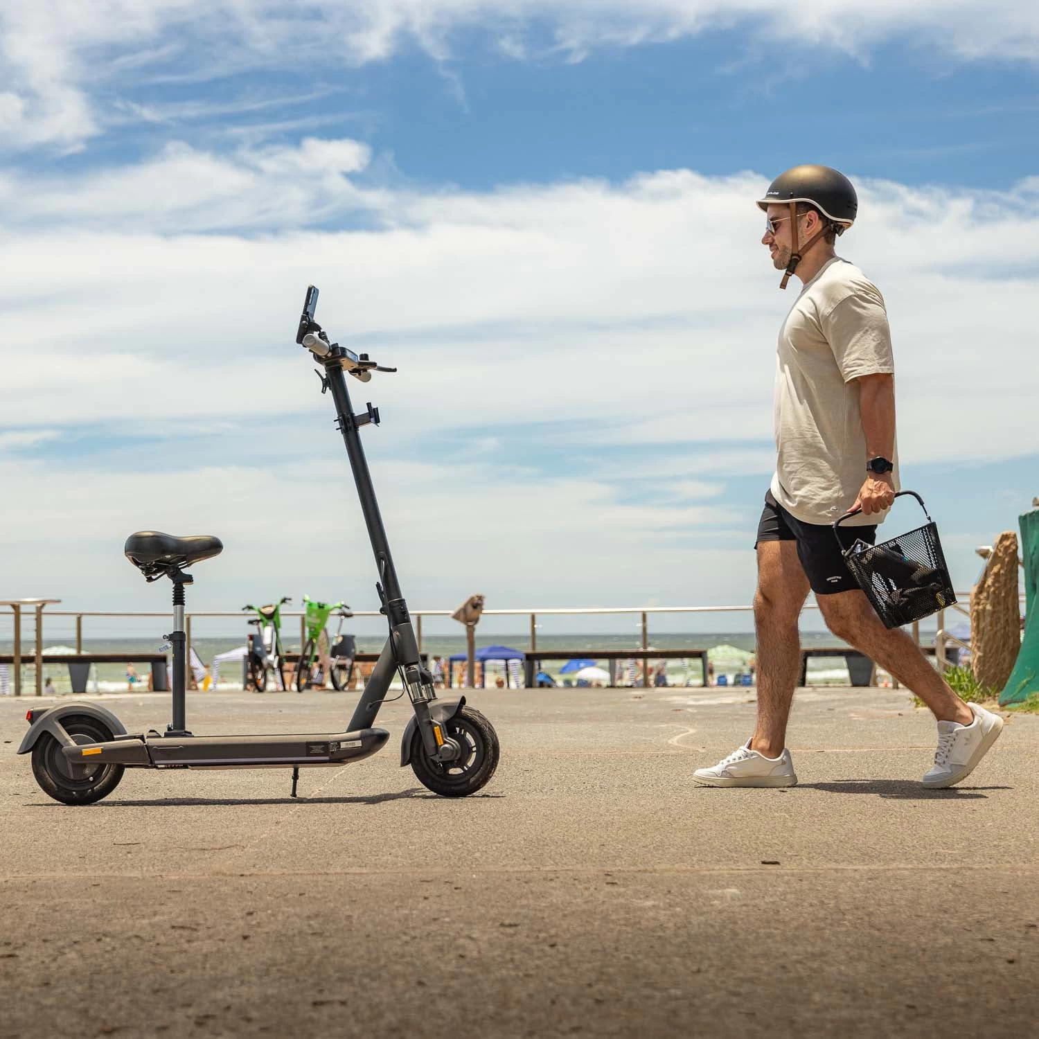 Don’t need the basket on a ride, no worries! The basket can also easily detach from the scooter with just the click of a button so you can take it off when not needed or take it with you when you get to your destination.