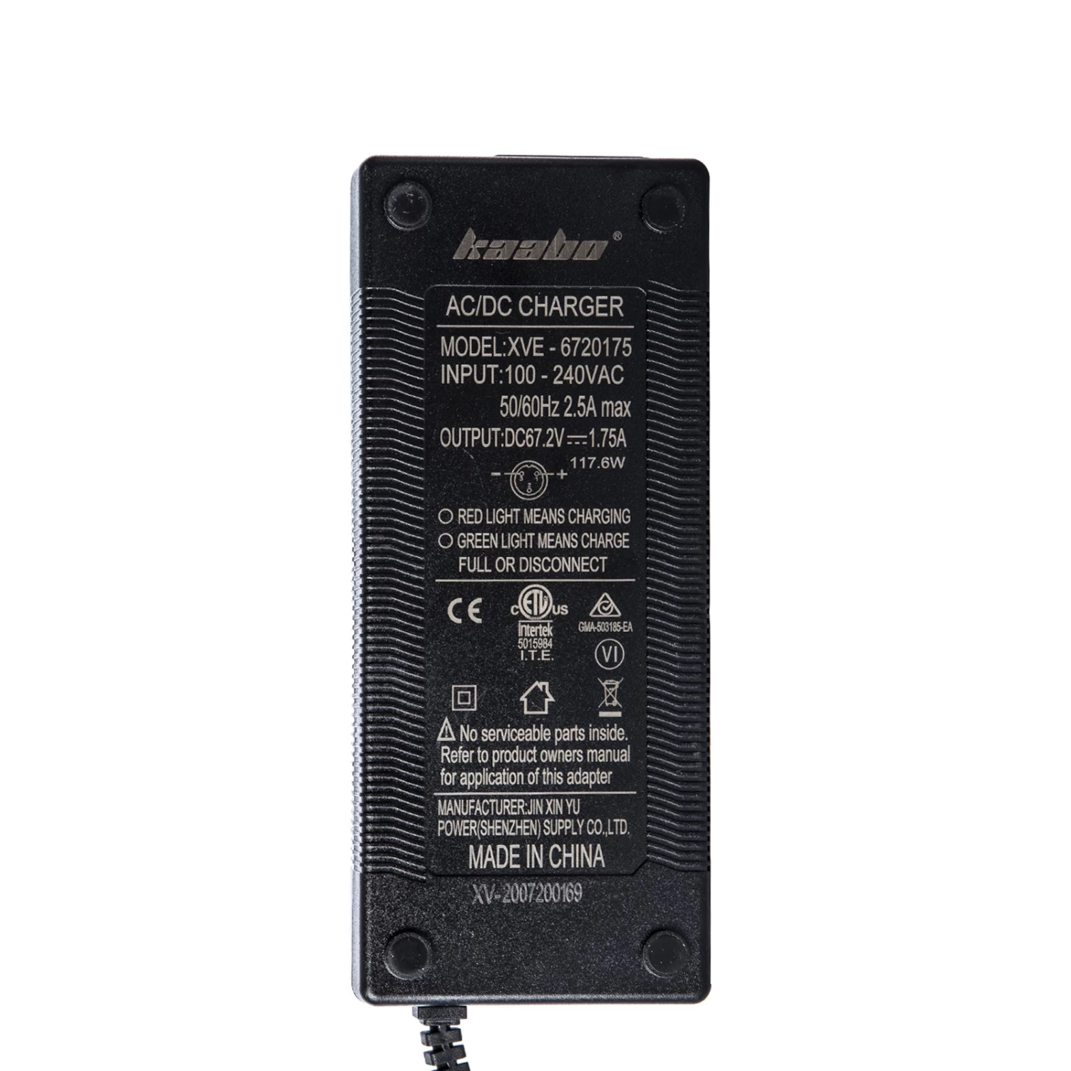 This high quality Kaabo 2AH electric scooter charger is compatible with most 60V Kaabo electric scooters. Ensure optimal performance & safety of your Kaabo Electric Scooter with a genuine Kaabo Charger.