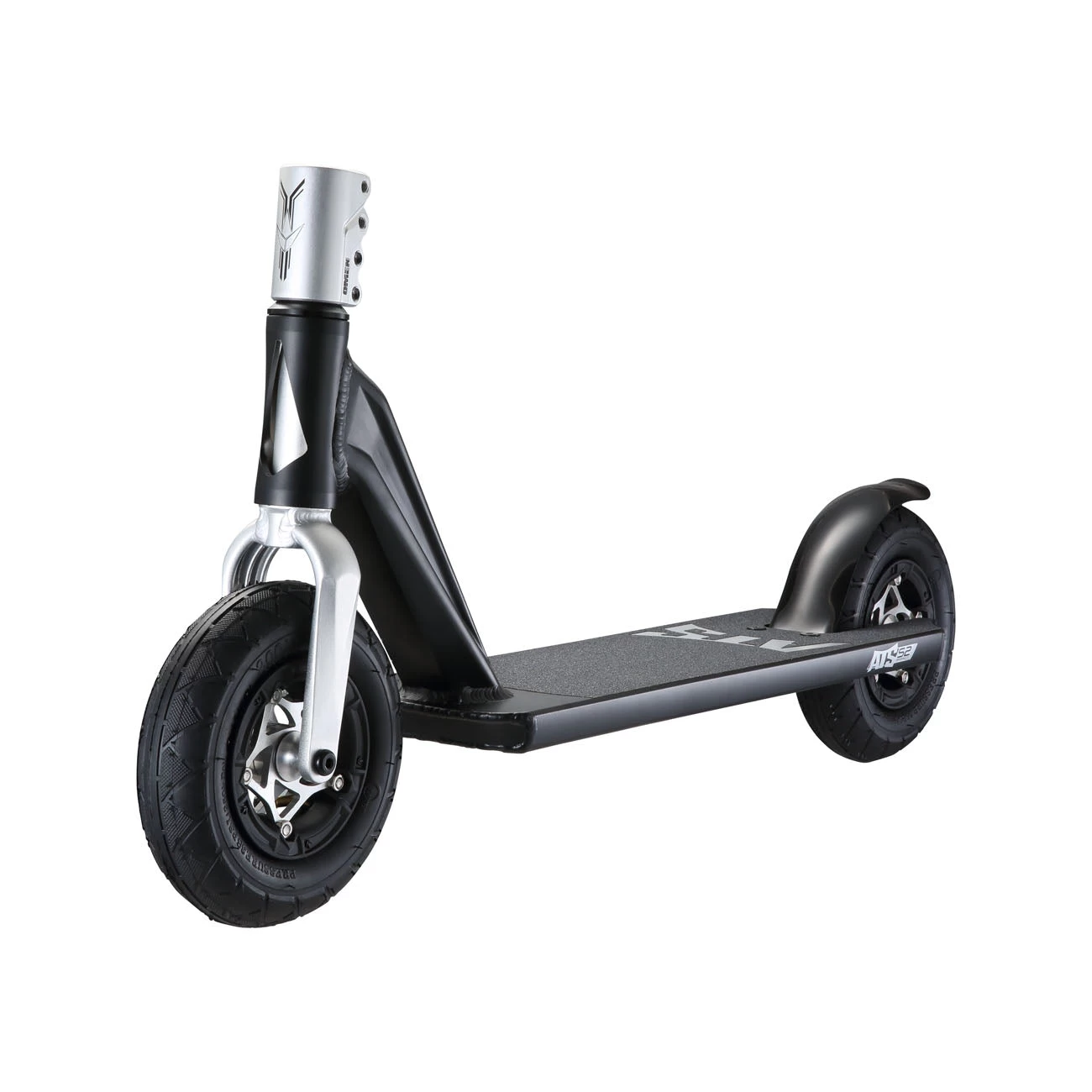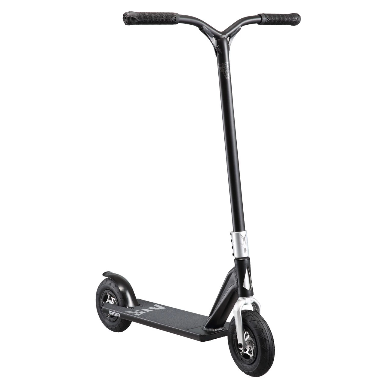 The ATS Complete’s light-weight aluminium hardware and unique cut-out deck design ensures it is one of the lightest all-terrain scooters out there at only 5.0kg/10.9lbs. Included in this complete package is the ultra-light Bull Bar (weighing in at only 900g/1.9lbs) engineered from high density aluminium and comes with FREE TPR Handgrips. Fitted with all-terrain 200 x 500mm pneumatic tyres with tread, and enforced with an aluminium spoked core, means that you can ride the ATS Complete almost anywhere. The deck is engineered with 6061-T6 Aluminium with an 84 head tube angle, giving you the smoothest ride over the toughest of terrain. The ATS Complete is reinforced with a 6061-T6 All Terrain Aluminium Fork and wrapped in the classic 4 Bolt Omen SCS Clamp.
