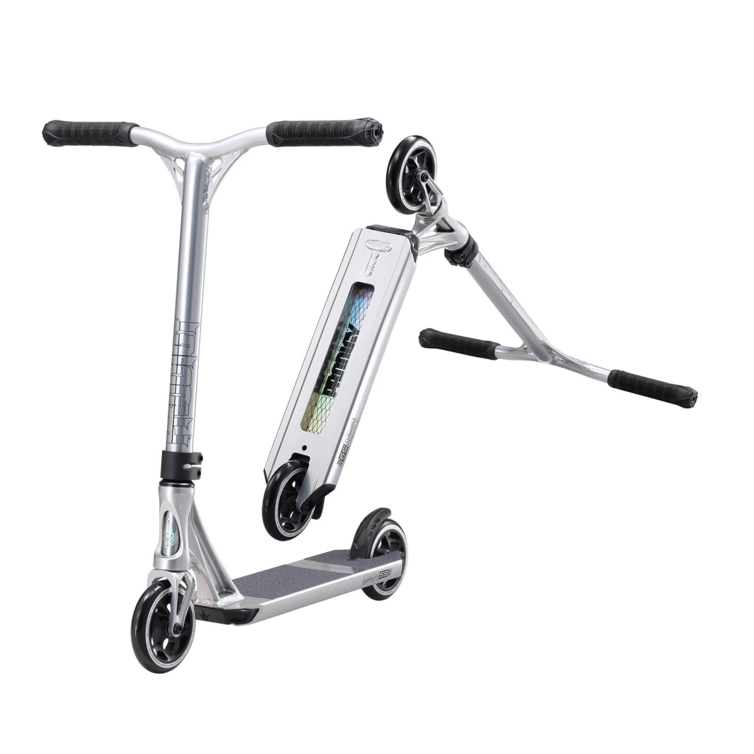 You asked; Envy has delivered. Introducing the all-new Prodigy XS/Mini Complete Scooter in fresh Chrome colouring This Xtra Small pro scooter boasts the same great quality and ride as its classic big brother, the Prodigy, and packs a punch when it’s shredded at the skatepark. This scooter is for you.