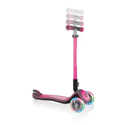 Leave a trail of glowtastic lights as you scoot down the block on the Globber Elite Deluxe 3-Wheel Scooter in Deep Pink! Featuring ELITE DELUXE LIGHTS that will make your scooting days all the brighter with LED light-up front wheels.