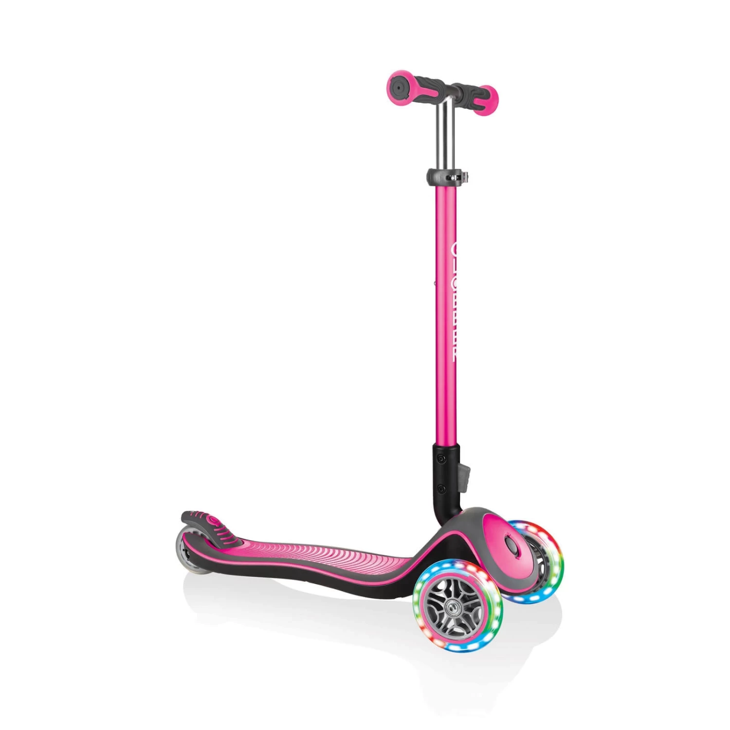 Leave a trail of glowtastic lights as you scoot down the block on the Globber Elite Deluxe 3-Wheel Scooter in Deep Pink! Featuring ELITE DELUXE LIGHTS that will make your scooting days all the brighter with LED light-up front wheels.