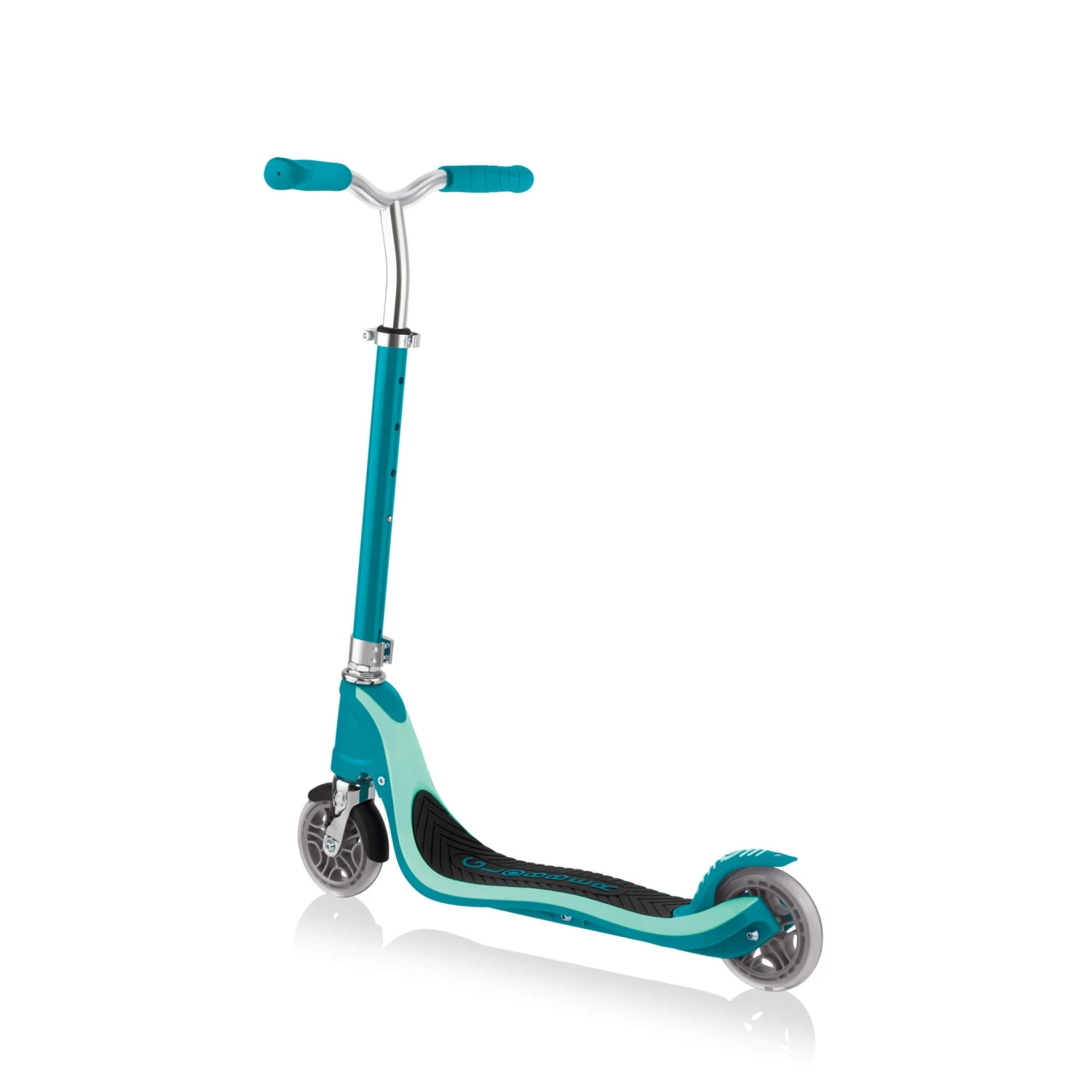 Hang out and scoot around on the Globber FLOW 125 LIGHTS 2-wheel scooter! The FLOW 125 LIGHTS is an adjustable LED-wheel scooter and the best 2-wheel ride for kids and teens aged 5+ transitioning to their first 2-wheel scooter.