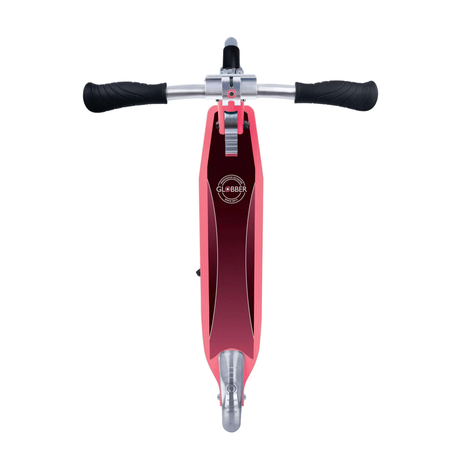 Be in your ELEMENT and go with the Globber FLOW Element 2-wheel foldable scooter with lights in coral pink!