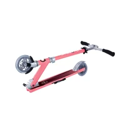 Stylish & chic in coral pink with a strong but light weight construction, FLOW ELEMENT LIGHTS features a patented folding system, a 4-height adjustable T-bar with foldable handles, trendy anti-slip grip tape, a strong rear brake, and bright light-up 125mm wheels to deliver robust rides—all with a fun-tastic glow!