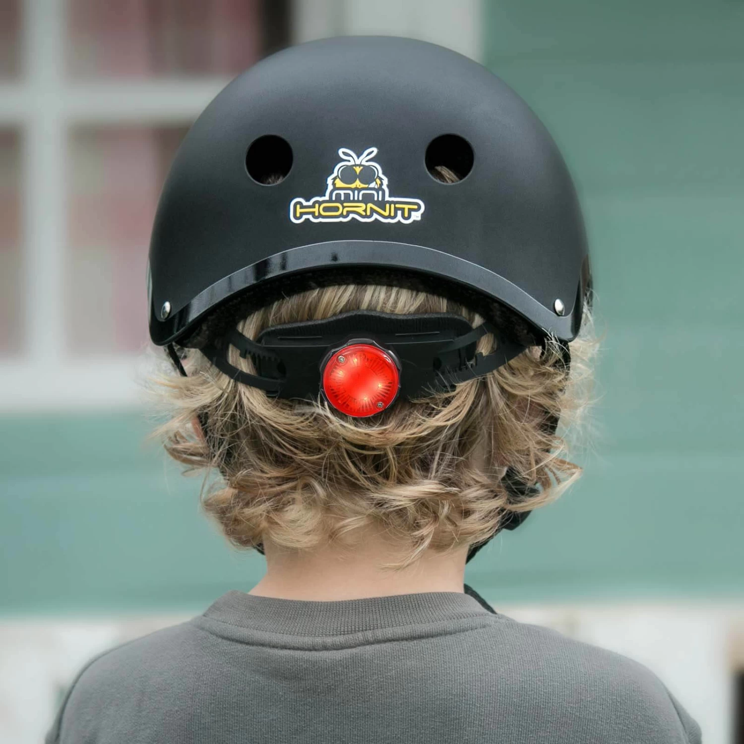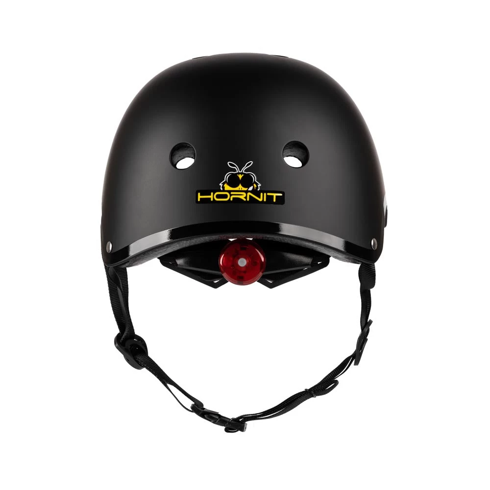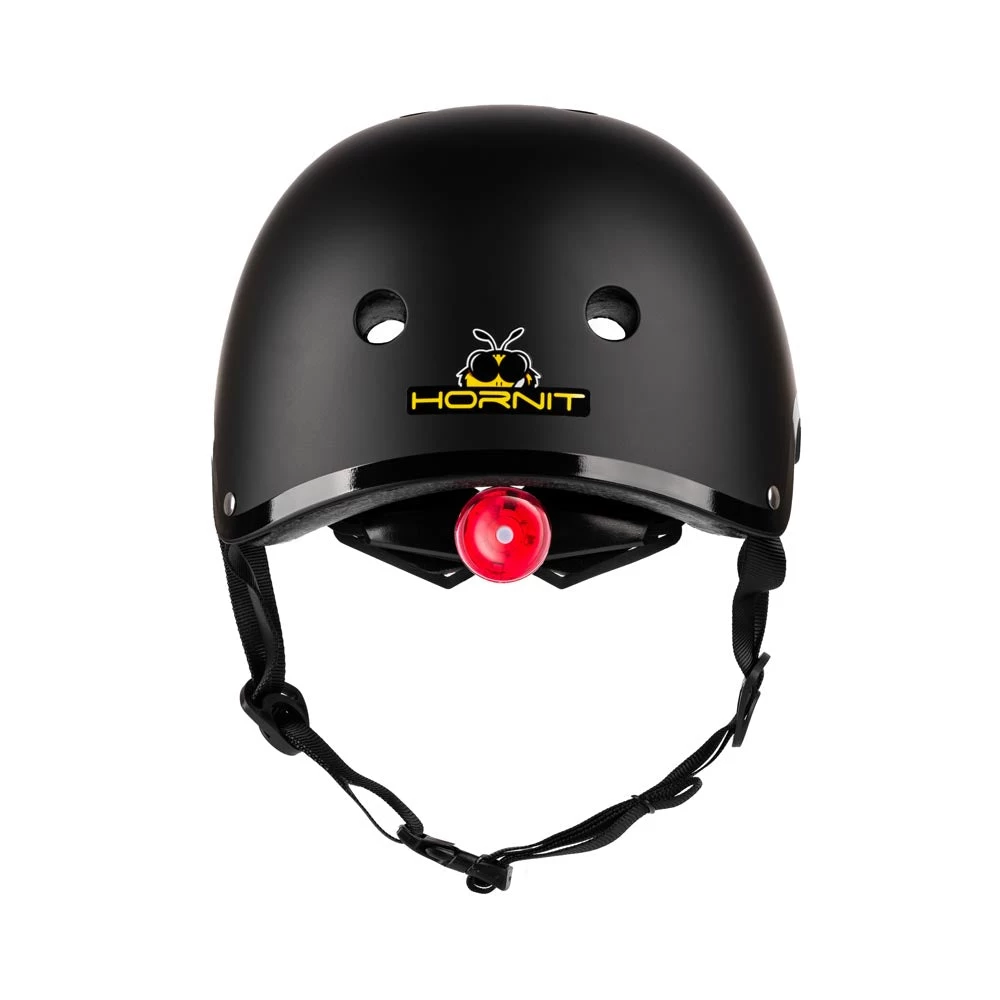The Hornit Kids Helmet in Matt Black comes with a slick patent trim, this Stealth Helmet is understated and stylish. It wouldn’t look out of place at the local skate park. But as you slip into the shadows, activate the LED light on the back so others can see you blaze your trail.