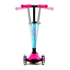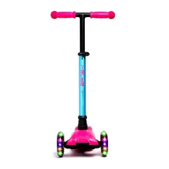 Each wheel on the scooter employs magnets to illuminate the internal LED lights, meaning the scooter is completely battery-free. The vibrant, multi-coloured lights not only captivate your child but also leave a mesmerizing trail of colours as they roll. This feature adds an element of fun to your child’s scooter experience and offers enhanced visibility for parents during low-light situations. The scooter’s design incorporates two wide front wheels (120mm) that facilitate the lean-to-steer mechanism, ensuring effortless manoeuvrability. Meanwhile, the twin rear wheels (80mm) serve a dual purpose by enhancing balance and facilitating brake connectivity for quicker stops. Every wheel is meticulously equipped with high-quality bearings to ensure an exceptionally smooth and enjoyable ride.