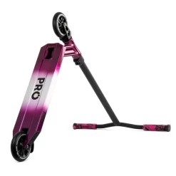 The PRO features a quality aluminium fork, robust double clamp with integrated headset, chromoly BMX low rise handlebars and sleek aluminium wheel cores.