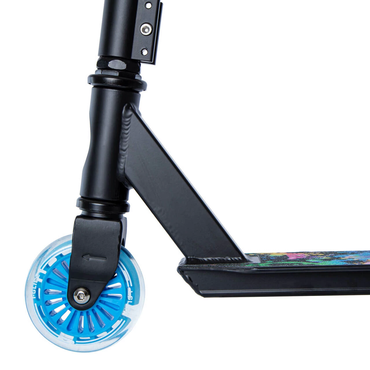 The JR 2-wheel scooter comes complete with LED light-up wheels with bright wheel cores, matching coloured handlebar grips and fun splatter griptape.