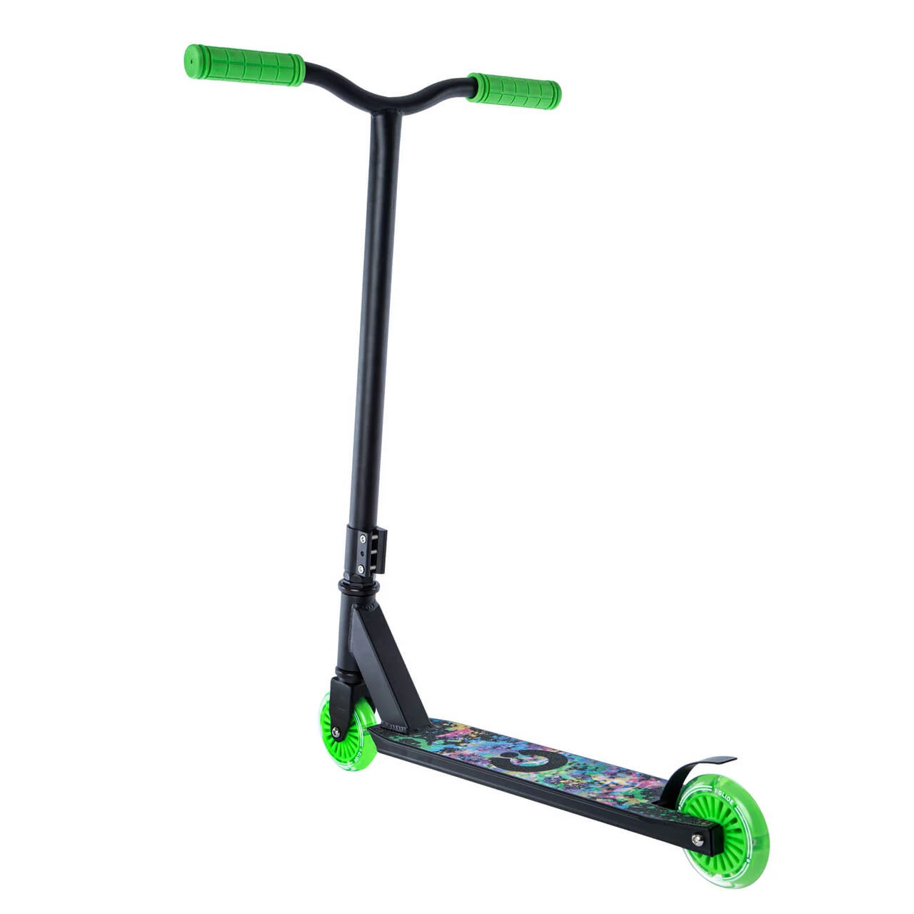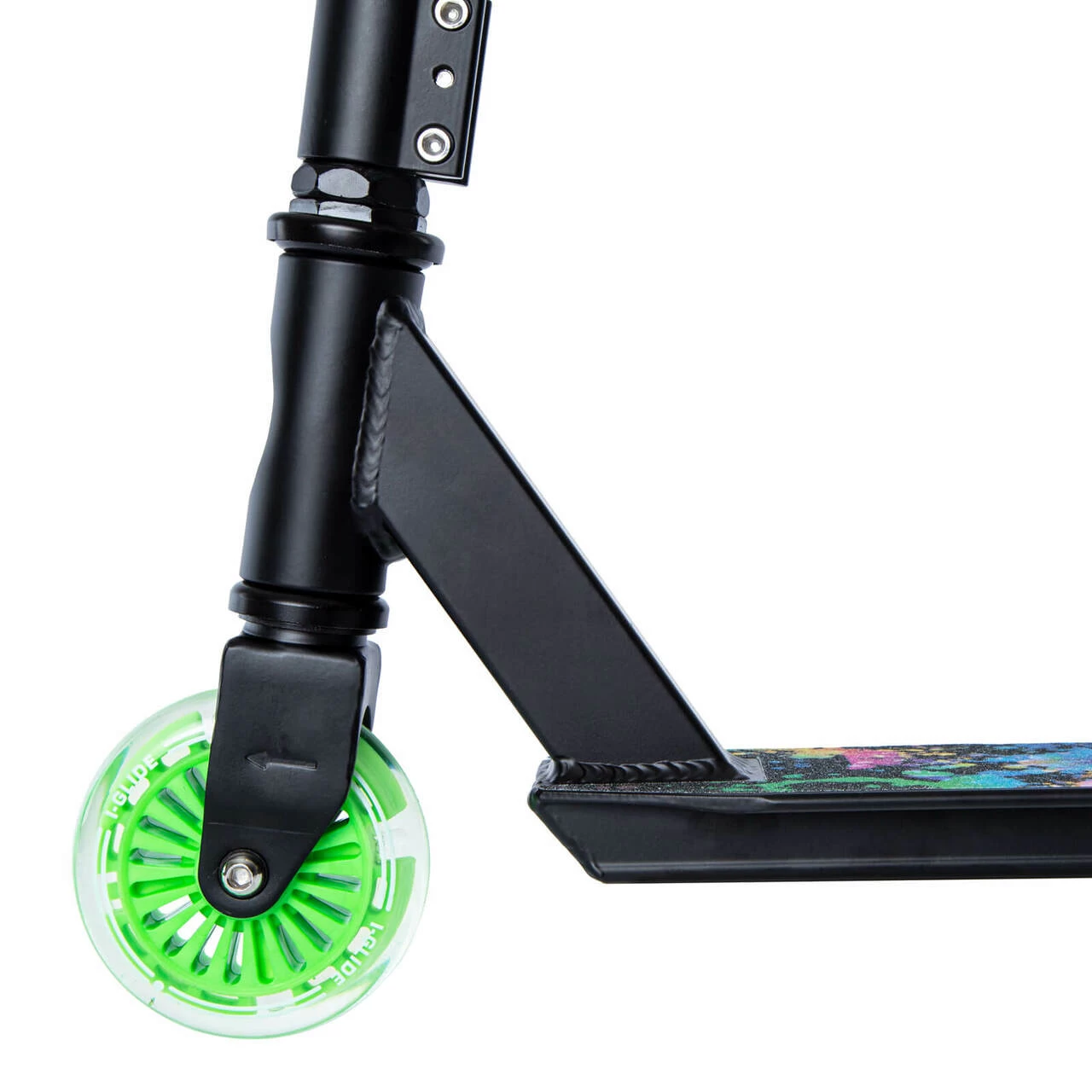 The JR 2-wheel scooter comes complete with LED light-up wheels with bright wheel cores, matching coloured handlebar grips and fun splatter griptape.