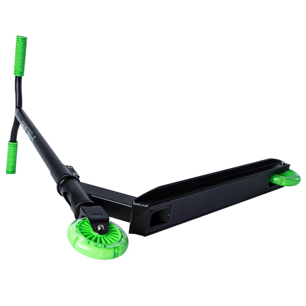 Featuring chromoly BMX low rise handlebars, along with a sleek, durable deck design, provides a strong yet light weight scooter to give precise control to riders.