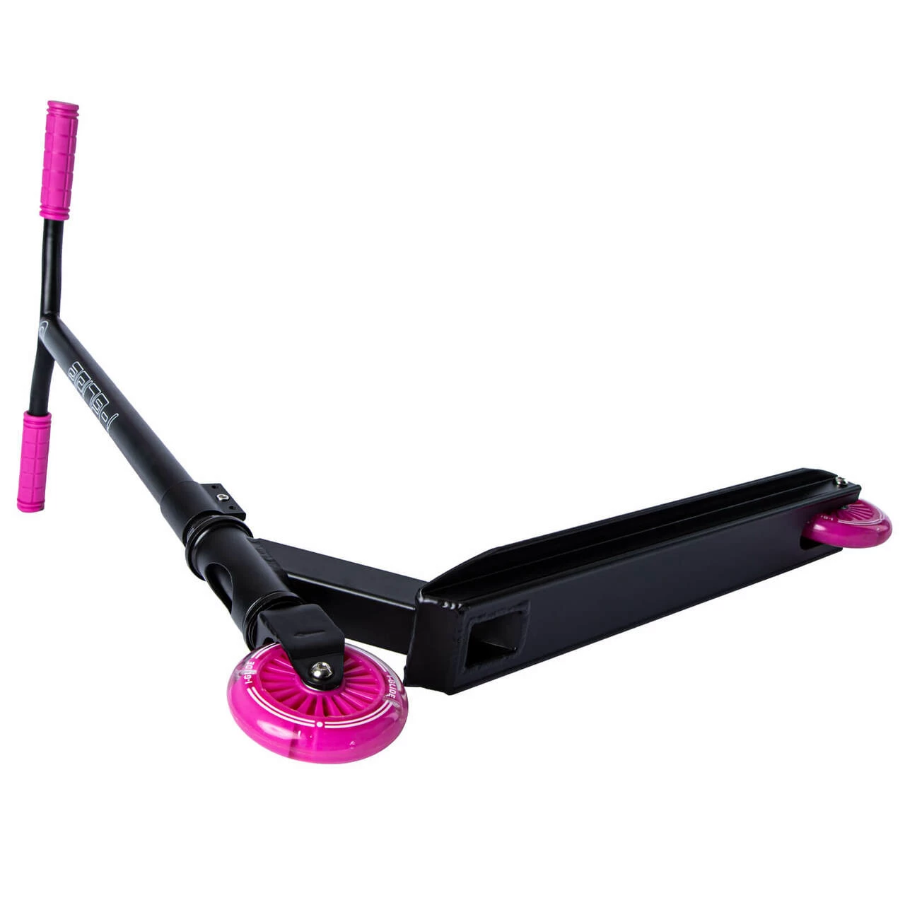 Featuring chromoly BMX low rise handlebars, along with a sleek, durable deck design, provides a strong yet light weight scooter to give precise control to riders.