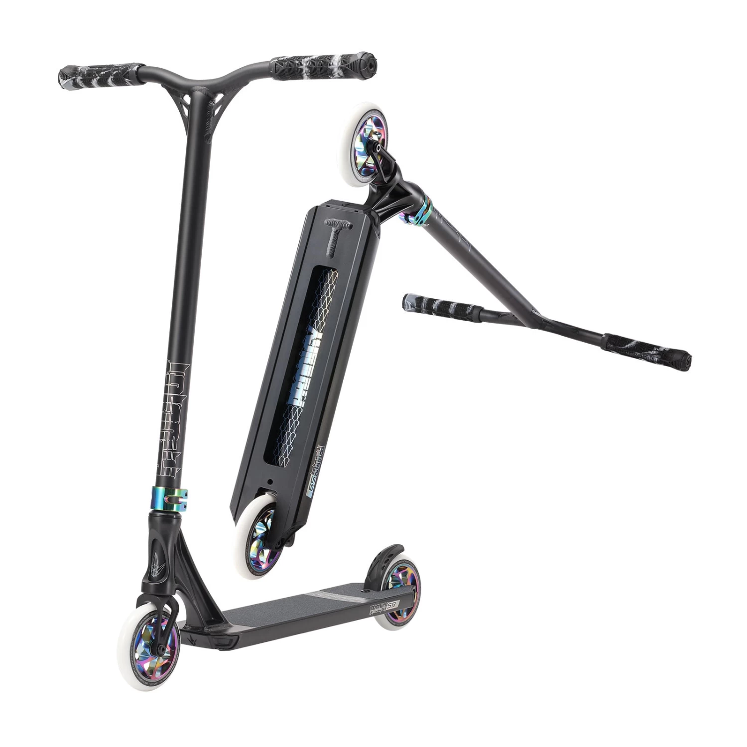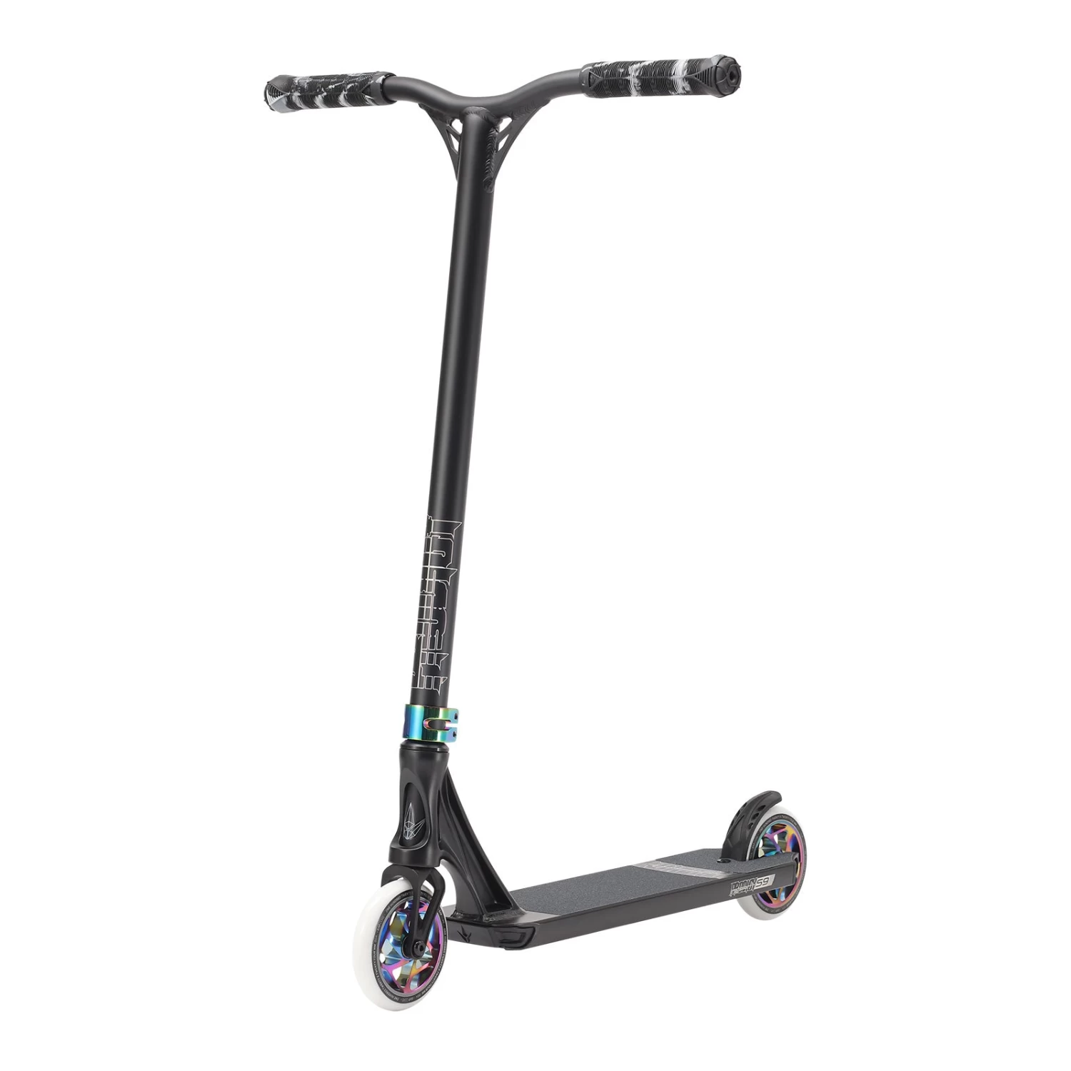 With its slate black deck and vibrant rainbow neochrome wheels, this pro scooter was built to impress.
