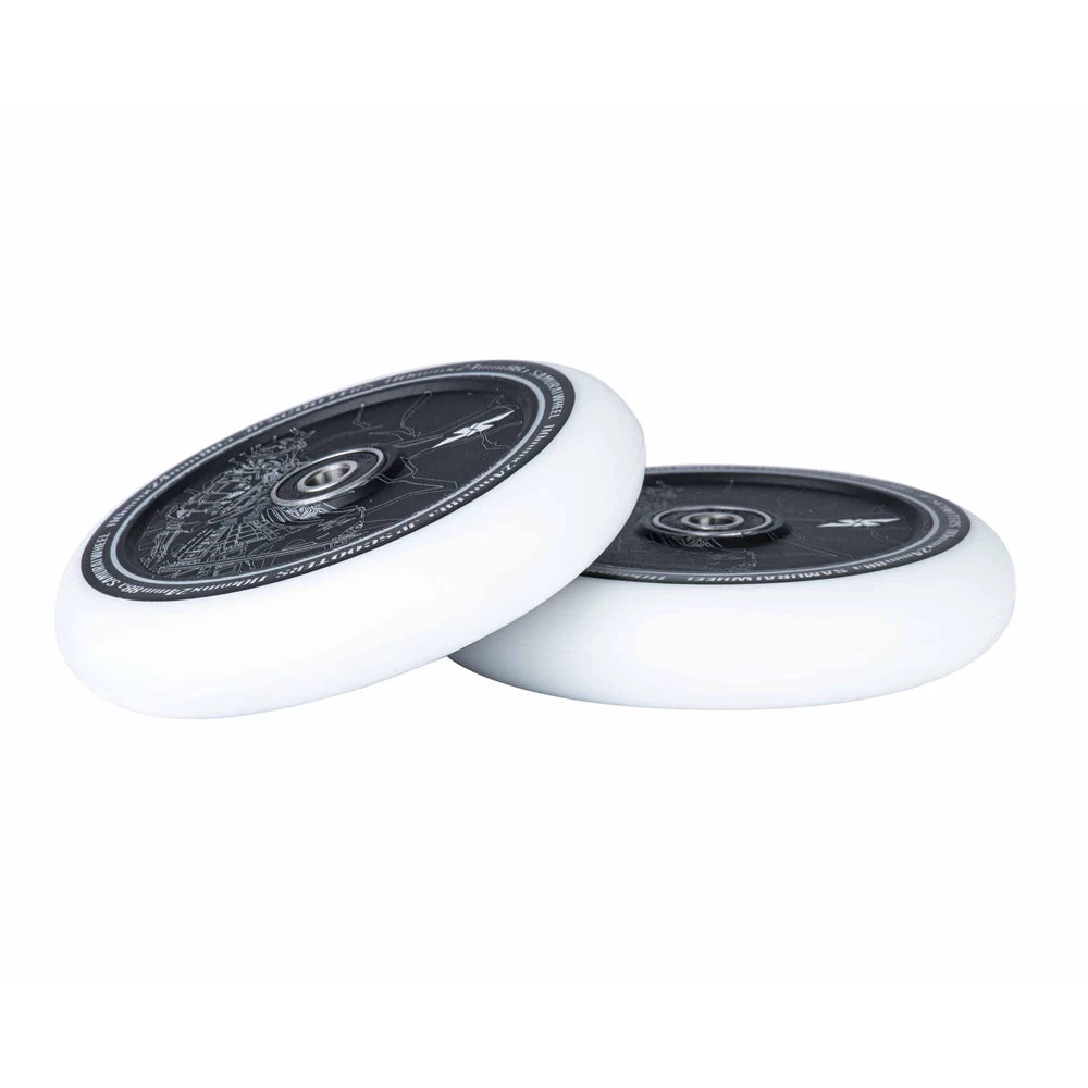 Finished with an amazing laser etched samurai inspired design and available in 3 colourways, the Samurai Wheels from JP Scooters have created another rider designed masterpiece.