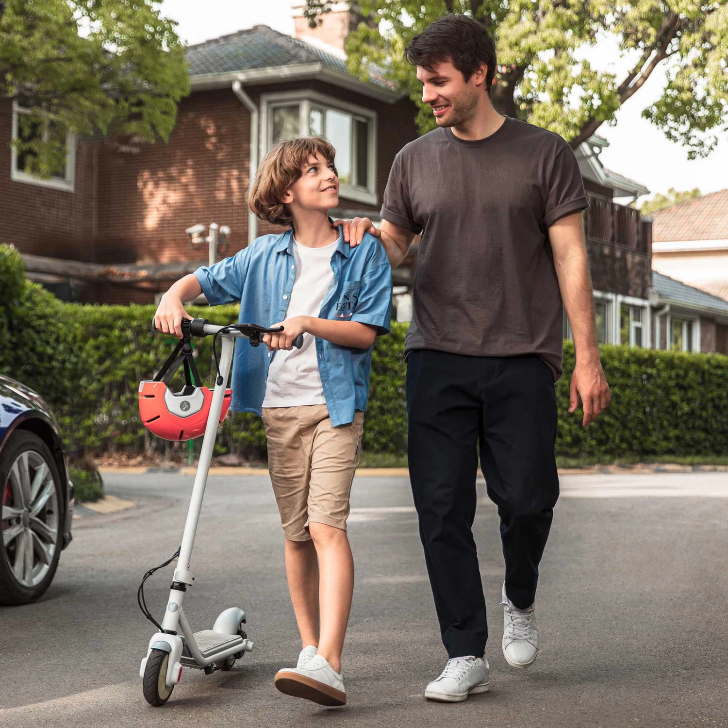 Designed with safety in mind, the C8 is equipped with a mechanical brake and built in switch sensor, making braking easier, more timely and therefore safer. Built with a wide deck and handlebars, plus a double-tube steel frame, be assured your little rider can scoot around confidently on this sturdy e scooter.